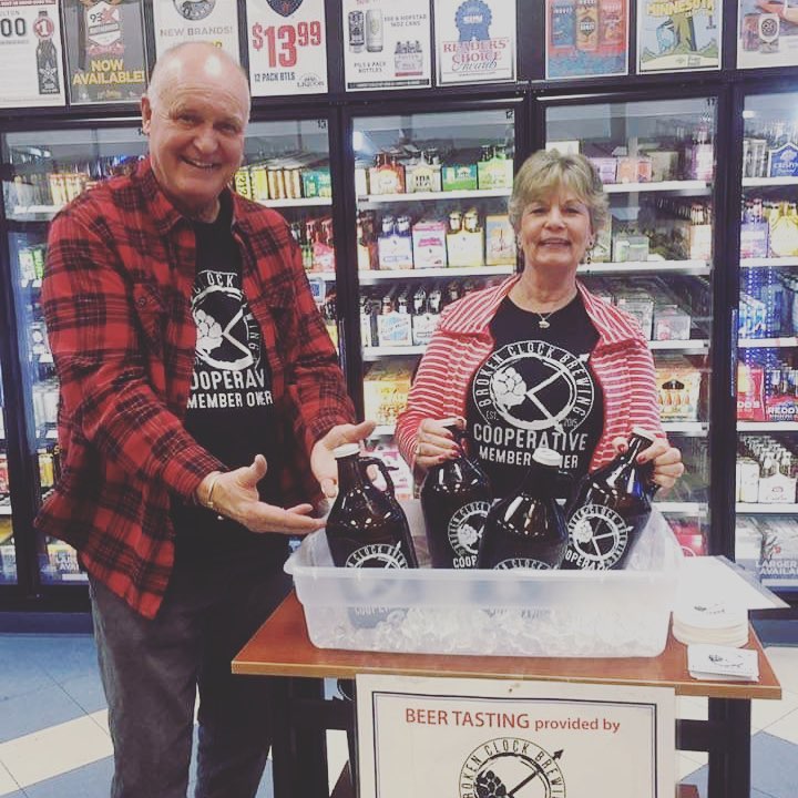 The excitement is thick this weekend: Our co-op is about to hit 700 members! ?? Come be a part of the Broken Clock family — a one time fee of $200 gets you a lifetime of free beer, fun friends, and equal ownership of our brewery. Pictured: Mike and Deb, Member #528 & #529, doing…