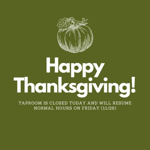 Happy Thanksgiving! Taproom is closed today and will open again on Friday (11/26
