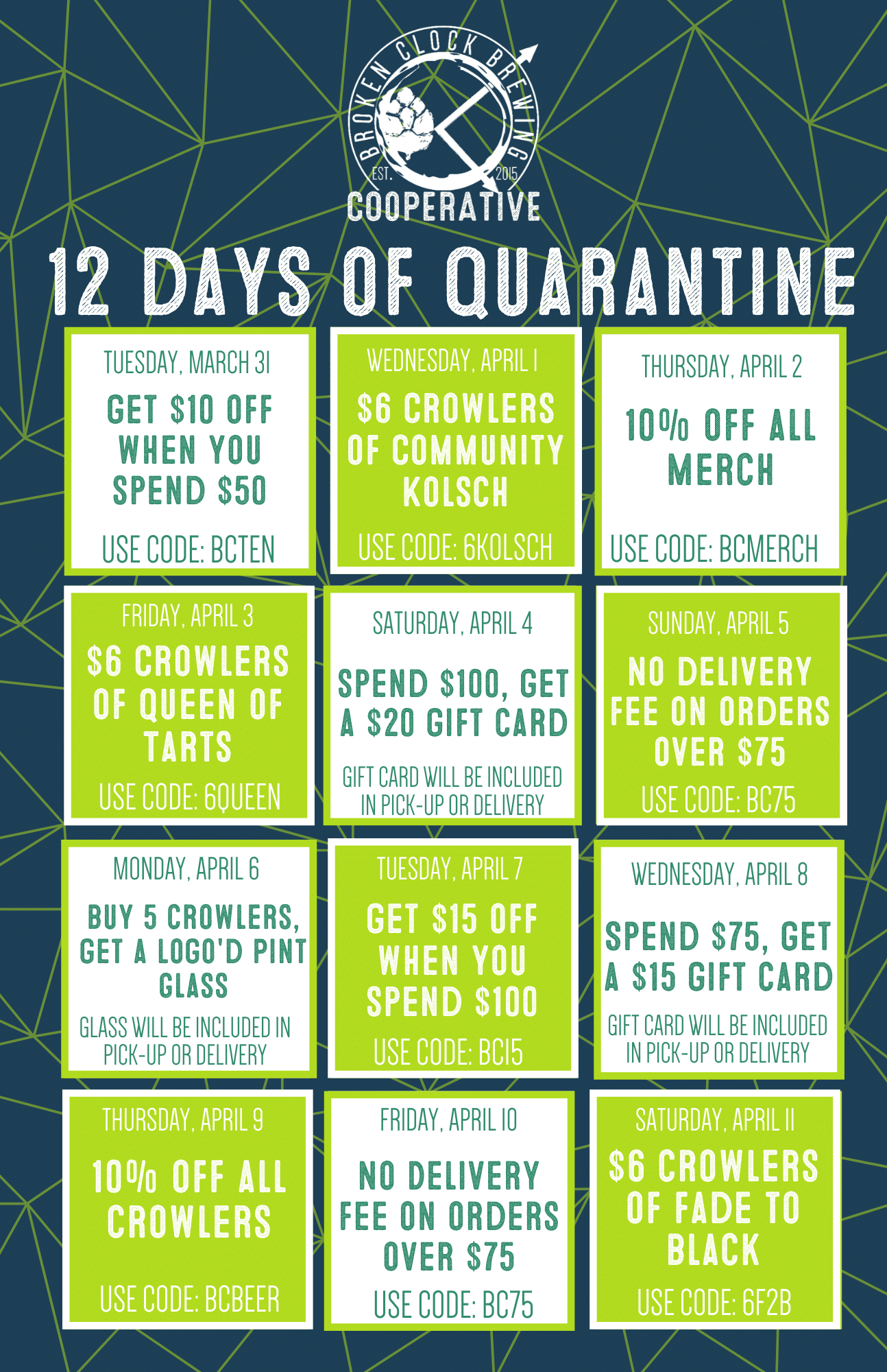 Check out our different specials we will have each day starting tomorrow (3/31). Apply the coupon code on our online store at check out to get each offer.