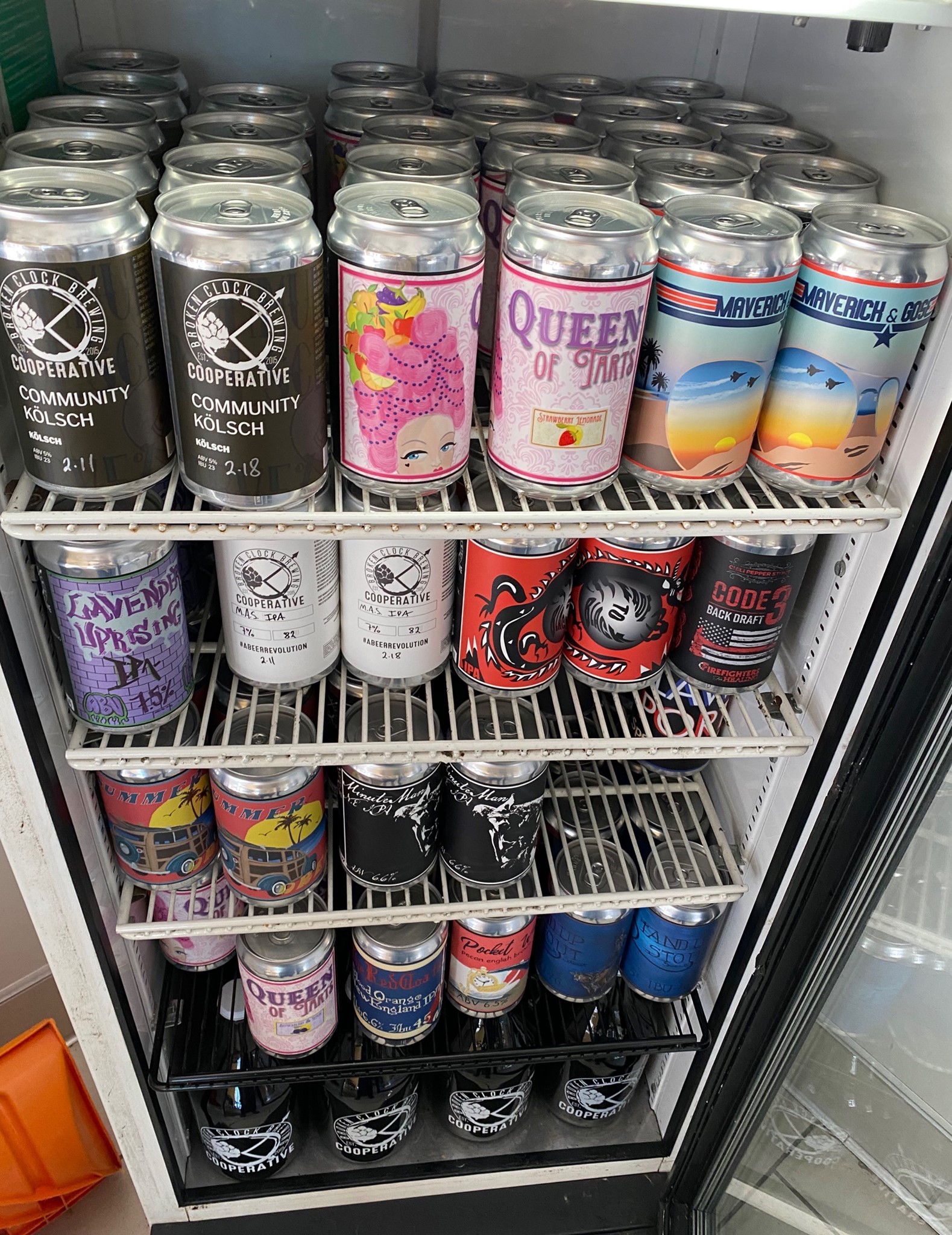 Our crowler fridge is full and ready for to-go orders! We have updated our hours for growler, crowler & merch sales.